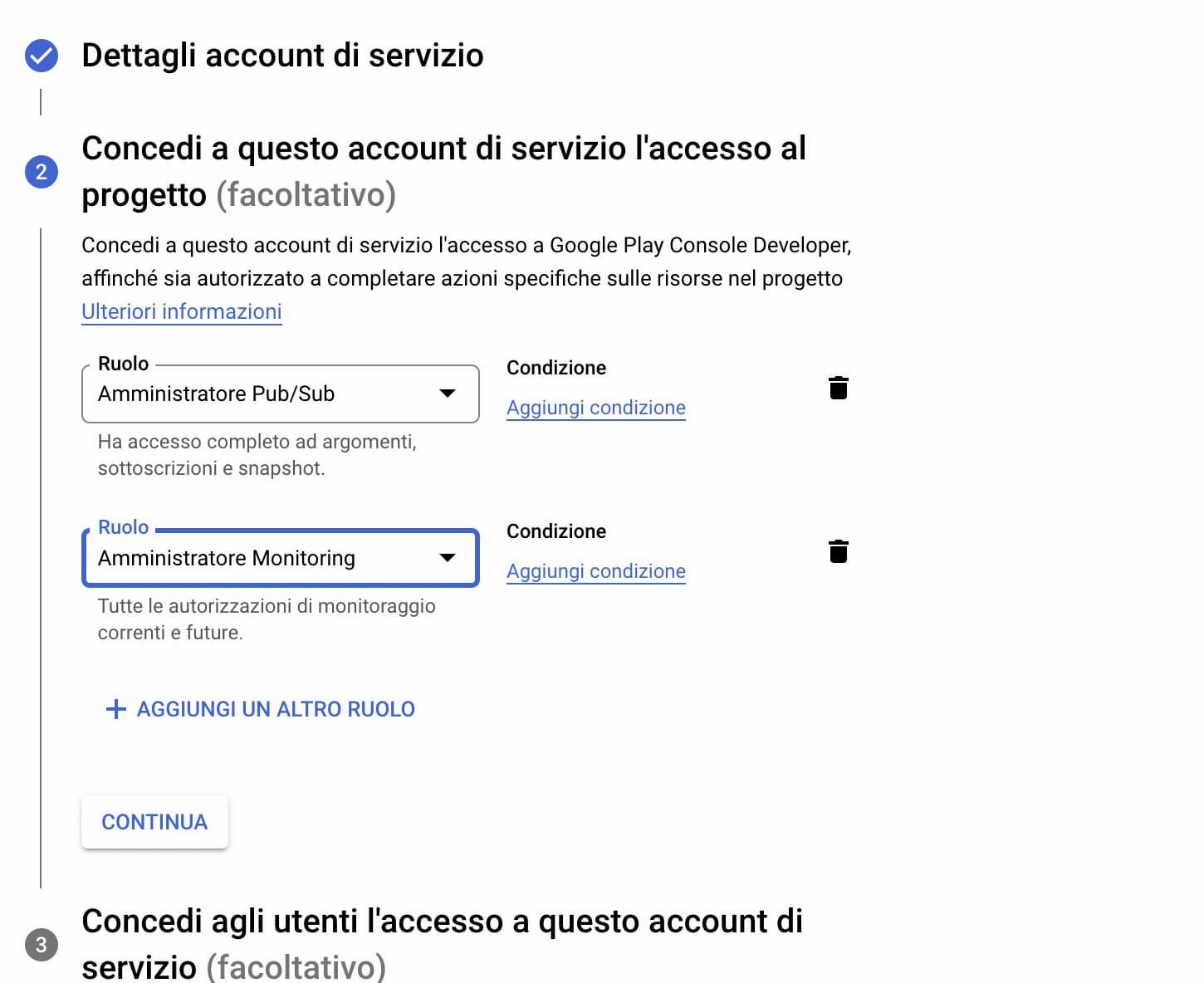 Account di Servizio alla vostra Google Play Console, fate molta attenzione nel dare i giusti permessi.