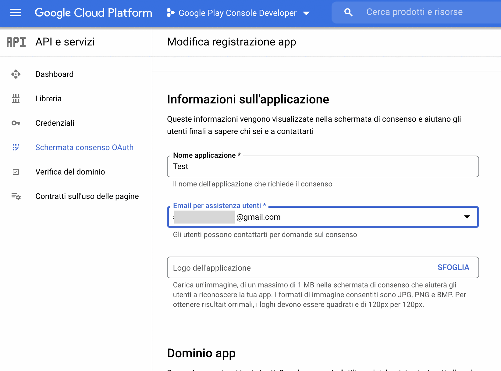 - Per farlo è necessario configurare la schermata di accesso di OAuth