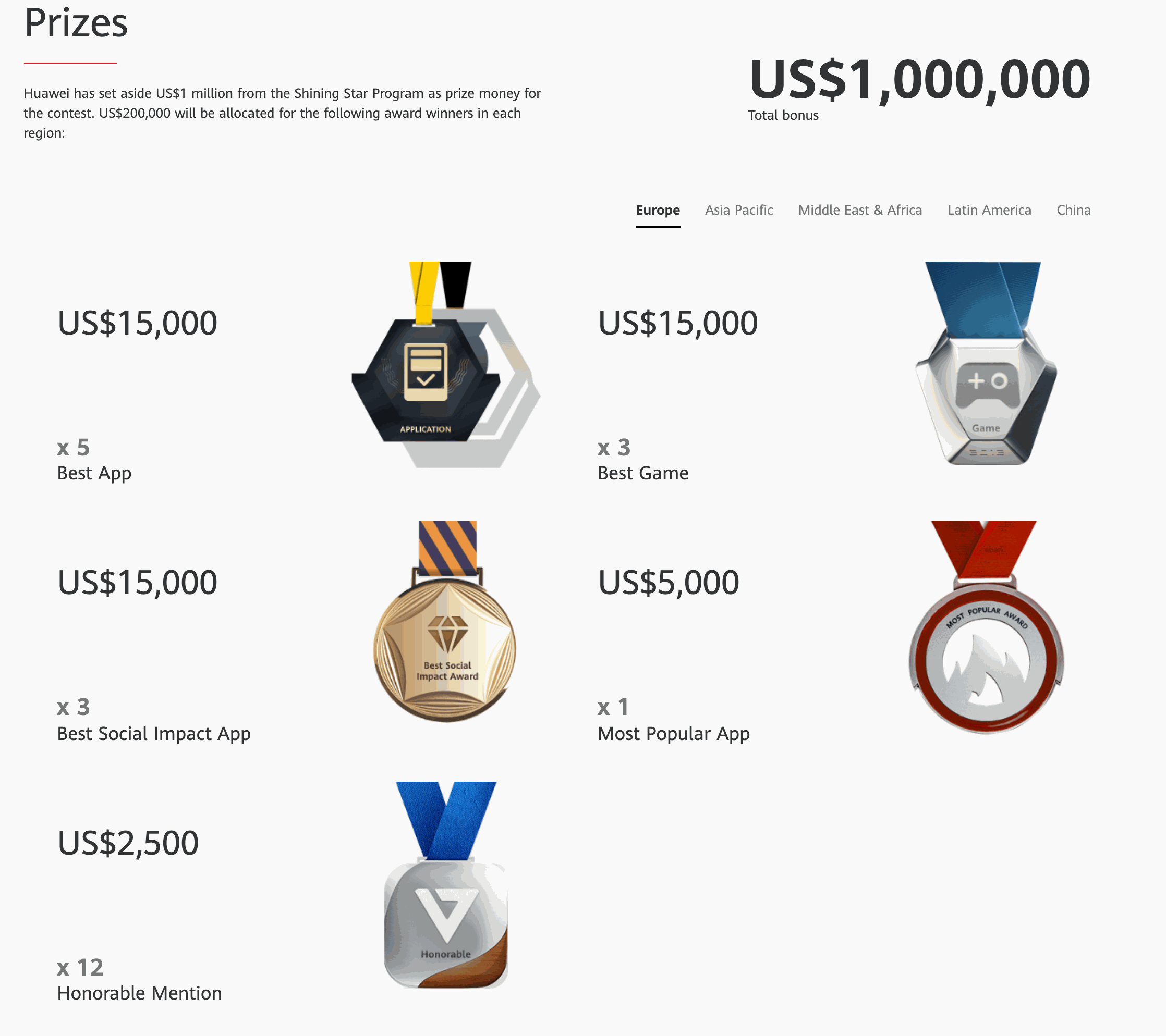 Huawei premi fino a 1M di dollari per gli sviluppatori.